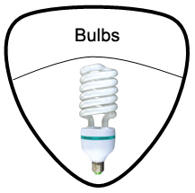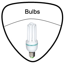 Fluorescent tubes (T4, T5, T8), low consumption bulbs, incandescent, GU10, E27, MR16, spotlights, etc.